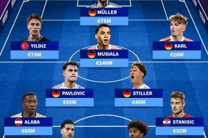 NBA直播10月29日讯 德国转会市场根据拜仁青训出身现役球员的历史最高身价,列出身价最高阵容,穆勒、穆西亚拉、伊尔迪兹在列。