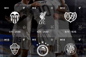NBA直播10月30日讯 11月即将到来,皇马官方晒出了球队赛程。除了11月1日主场迎战瓦伦西亚外,西甲豪门将迎来5连客,其中包括前往安菲尔德挑战利物浦。