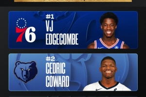 NBA直播10月30日讯 NBA官方公布了最新一期的NBA新秀榜,埃奇库姆排在第一。而灰熊的锡德里克-科沃德排名第二,迪伦-哈珀排名第三。