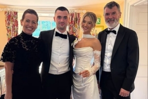 NBA直播10月30日讯 据《太阳报》报道,曼联传奇罗伊-基恩的儿子艾丹上周末举行了婚礼。基恩在社媒分享了一张家庭合影,照片中他身穿燕尾服与妻子特蕾莎和新婚夫妇站在一起。