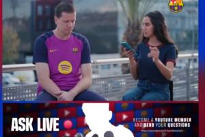 NBA直播10月30日讯 巴萨门将什琴斯尼今日参与了球队的直播节目,节目中他回答了来自球迷的实时提问,还进行了一个快问快答挑战。