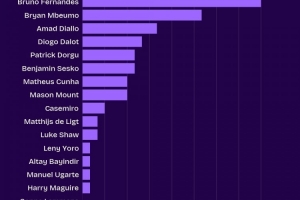 NBA直播10月31日讯 数据机构squakwa统计了本赛季曼联队内英超创造机会情况,B费仍独自领跑。