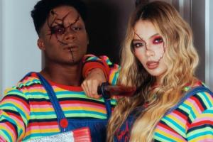 NBA直播10月31日讯 皇马前锋恩德里克更新社媒,晒出了他与妻子加布里埃利的万圣节扮相。他们扮演的是恐怖电影鬼娃回魂系列的恐怖公仔Chucky。