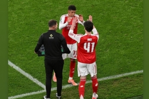 阿森纳中场赖斯社媒转发与安努斯的合照,鼓励这位小将,配文:“这(首秀)是你应得的,兄弟!你是顶尖的球员,也是个出色的小伙子!未来会有更多出场。”