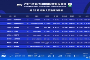 NBA直播10月31日讯 中国足协公布了中超第29轮裁判选派名单,其中傅明执法海港vs浙江,沙特裁判穆罕默德-萨米执法海牛vs三镇。