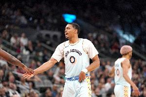 NBA直播10月31日讯 马刺今日107-101击败热火,赛后,本场贡献11分3板1助攻的马刺球员凯尔登-约翰逊接受媒体采访。