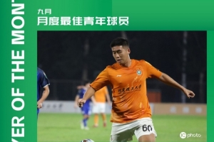 NBA直播10月31日讯 中乙联赛官方公布了9月最佳青年球员,北京理工球员程烨垚当选,他在9月出场4次打入3球并送出2次助攻。