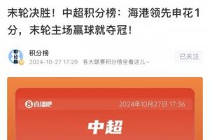 NBA直播10月31日讯 上赛季中超第29轮结束,海港领先申花1分,两队末轮决胜。