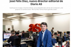 NBA直播11月1日讯 阿斯报迎来新主编何塞-费利克斯-迪亚兹,PRISA Media体育总经理阿洛伊西奥-阿劳霍任命何塞-费利克斯-迪亚兹为阿斯报的新任编辑主任。