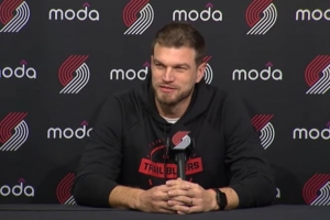 NBA直播11月1日讯 今日NBA杯小组赛,开拓者对阵掘金,斯普利特赛前接受了媒体采访。