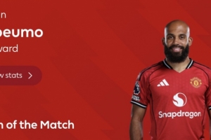 NBA直播11月2日讯 曼联客场2-2战平诺丁汉森林,赛后英超官方评选出曼联球员姆伯莫当选为本场比赛最佳球员。