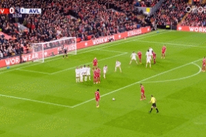 NBA直播11月02日讯 英超第10轮利物浦vs维拉第32分钟,加克波内切造禁区线前任意球,索博斯洛伊主罚任意球打后点,被大马丁扑出!