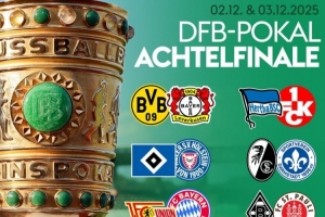 NBA直播11月3日讯 德国杯1/8决赛对阵已经出炉,多特将对阵勒沃库森,拜仁交手柏林联合,比赛将于当地时间12月2日、3日进行。