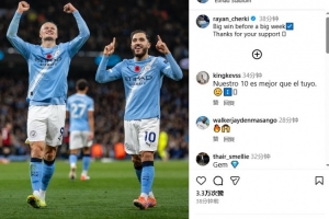 NBA直播11月3日讯 2025-26赛季英超第10轮,曼城3-1战胜伯恩茅斯。赛后,本场比赛送出2次助攻的谢尔基在社交媒体庆祝球队获胜。