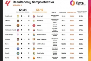 NBA直播10月21日讯 OPTA统计了西甲第九轮各场比赛的有效时间,没有任何一场比赛的有效时间超过60分钟。