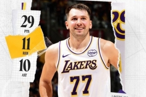 东契奇本场比赛砍下29分11板10助,赛季首次达成三双。