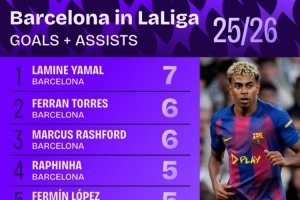 NBA直播11月3日讯 据Squawka统计,巴萨本赛季5名球员联赛参与进球5+,五大联赛首队。