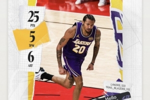 NBA直播11月4日讯 NBA常规赛,湖人背靠背123-115击败开拓者,取得4连胜。