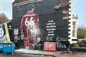NBA直播11月04日讯 北京时间明天凌晨4点,欧冠第4轮利物浦将主场迎战皇马。赛前,前利物浦后卫阿诺德在利物浦当地的一处著名壁画遭到了球迷的污损。
