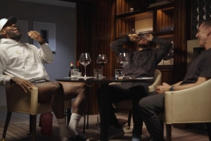 NBA直播11月4日讯 今天,由湖人前锋詹姆斯和NBA名宿纳什所主持的播客节目《球场大脑》播出第三季第三集,库里担任嘉宾。