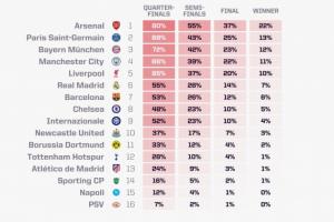 NBA直播11月05日讯 今日欧冠,拜仁客胜巴黎,利物浦击败皇马,阿森纳、马竞、热刺获胜,那不勒斯、尤文战平。OPTA更新欧冠夺冠概率。