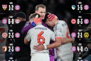 NBA直播11月5日讯 本轮欧冠,拜仁2-1战胜巴黎豪取16连胜,拜仁官方发布16连胜海报。拜仁的16连胜也继续刷新五大联赛最佳开局纪录,他们本月还将对阵柏林联合、弗赖堡、阿森纳以及圣保利。