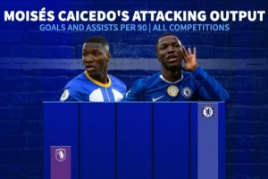 NBA直播11月5日讯 本赛季凯塞多在进攻端发挥越来越好,德转也盘点了球员生涯每90分钟参与进球数据(各项赛事进球+助攻),其中来到英超后逐年递增,具体如下: