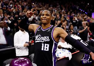 NBA直播11月6日讯 NBA常规赛,国王主场121-116战胜勇士。威少此役出战35分钟25秒,13中9,其中三分4中3,罚球2中2,得到23分16篮板10助攻1抢断,正负值+4。
