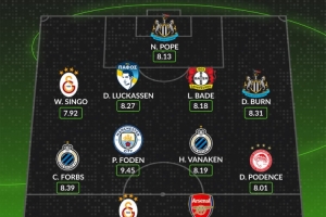 NBA直播11月6日讯 WhoScored列出了欧冠本周最佳阵容,奥斯梅恩、梅里诺、福登、丹-伯恩在列。