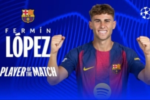 NBA直播10月22日讯 欧冠联赛阶段第3轮,巴塞罗那主场6-1奥林匹亚科斯。费尔明首发出战,赛后被评为全场最佳球员。