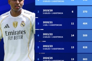 NBA直播11月8日讯 尽管皇马主帅阿隆索多次在新闻发布会上强调罗德里戈是球队阵中重要一员,但数据却显示了完全不同的情况。在进攻端,只有恩德里克和贡萨洛-加西亚比他出场时间更少。事实上,这是他加盟皇马以来前15场比赛出场时间最少的一个赛季。