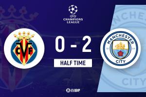 NBA直播10月22日讯 欧冠联赛阶段第3轮,比利亚雷亚尔坐镇主场陶瓷球场迎战曼城。上半场,哈兰德连续12场破门,B席建功。半场战罢,曼城2-0黄潜。