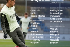 NBA直播11月8日讯 本轮西甲皇马将在客场对阵巴列卡诺,球队官方也公布了本场大名单,琼阿梅尼缺席,具体如下: