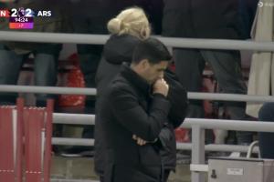 NBA直播11月9日讯 阿森纳本轮2-2战平桑德兰,补时桑德兰绝平,场边镜头给到了阿尔特塔。