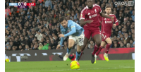 NBA直播11月10日讯 曼城vs利物浦第15分钟,B席踉跄前插追球,一脚铲翻范戴克。