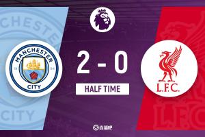 NBA直播11月10日讯 北京时间11月10日00:30,英超联赛第11轮曼城迎战利物浦的比赛在伊蒂哈德球场进行,上半场多库造点,哈兰德主罚点球被神勇扑出,努内斯助攻哈兰德头球首开记录,范戴克破门无效,冈萨雷斯远射建功,半场结束,曼城2-0利物浦。