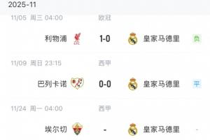 NBA直播11月10日讯 西甲第12轮,皇马0-0巴列卡诺。