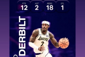 NBA直播11月10日讯 湖人球员范德比尔特更新社媒,转发了自己昨日比赛的数据海报。