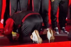 NBA直播11月10日讯 今日重庆铜梁龙进行了冲超庆典,在晚会上,赛季中途接手球队的主帅张外龙感谢了球员们的努力,并向队员们行大礼致谢。