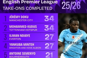 NBA直播11月11日讯 英超联赛已经进行了11轮,squakwa也统计了本赛季英超成功过人次数情况,多库和库杜斯并列居首。