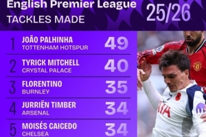 NBA直播11月11日讯 英超联赛已经进行了11轮,squakwa也统计了本赛季英超抢断次数情况,拜仁外租的帕利尼亚居首。