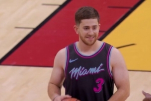 NBA直播11月11日讯 热火主场迎战骑士,节间休息时间球迷半场三分活动,一位热火球迷半场三分一击命中,拿走5000美元奖金。