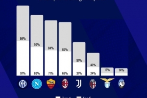 根据Footballrankings的预测,意甲有28%的概率下赛季五队征战欧冠。