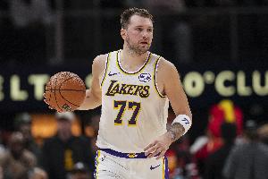 湖人先发阵容为:东契奇、里夫斯、八村、艾顿、斯玛特。