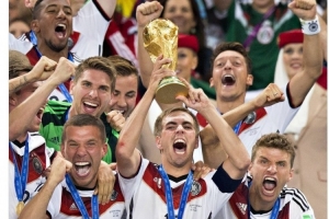 德国队社媒晒出拉姆捧起大力神杯的照片,配文:“祝2014年世界杯冠军拉姆生日快乐!”