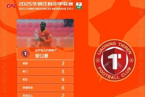 NBA直播11月12日讯 上演帽子戏法的辽宁铁人球员安以恩,当选为中甲联赛第30轮最佳球员。
