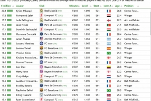 NBA直播11月12日讯 CIES足球天文台发布了最新报告,公布了全球100名球员应获得的最高年薪。这一统计模型考虑了过去一年中的比赛时间、比赛水平以及首发比例等因素,还包括球员的主要位置。在这份报告中,姆巴佩以应得2280万欧元(仅固定部分)年薪位居榜首。