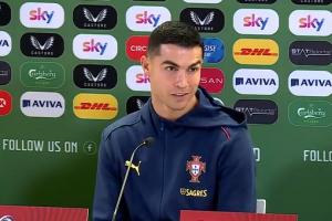 NBA直播11月13日讯 葡萄牙对阵爱尔兰的赛前,C罗出席发布会接受采访。
