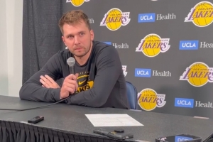 NBA直播11月13日讯 NBA常规赛,湖人92-121不敌雷霆。赛后东契奇接受了采访。