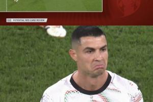 NBA直播11月14日讯 葡萄牙vs爱尔兰,C罗下半场因肘击动作被罚下。